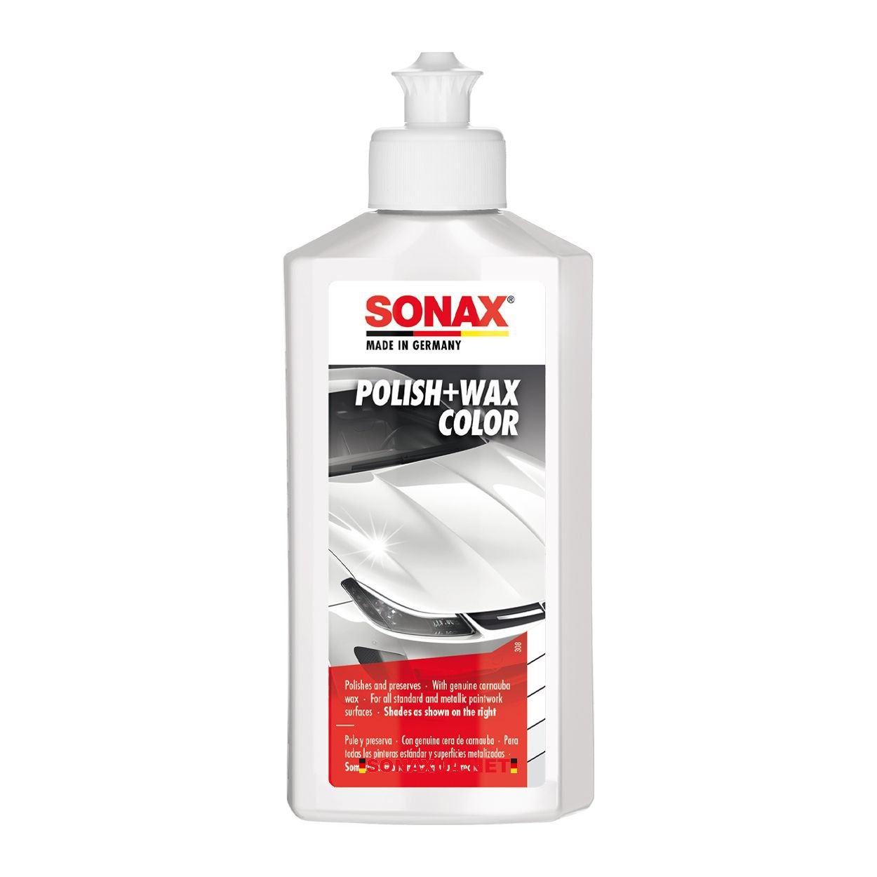 Полироль с красящими пигментами и воском в составе на основе нано-технологии. Очищает, полирует, консервирует все цветные краски и краски «металлик» в одном рабочем процессе. Небольшие царапины и повреждения на лаке покрываются цветным пигментом и защищаются таким образом от коррозии. Полироль придает поверхности яркий блеск и освежает цвет. Восковые нано-частицы защищают обработанную поверхность на протяжении длительного времени.