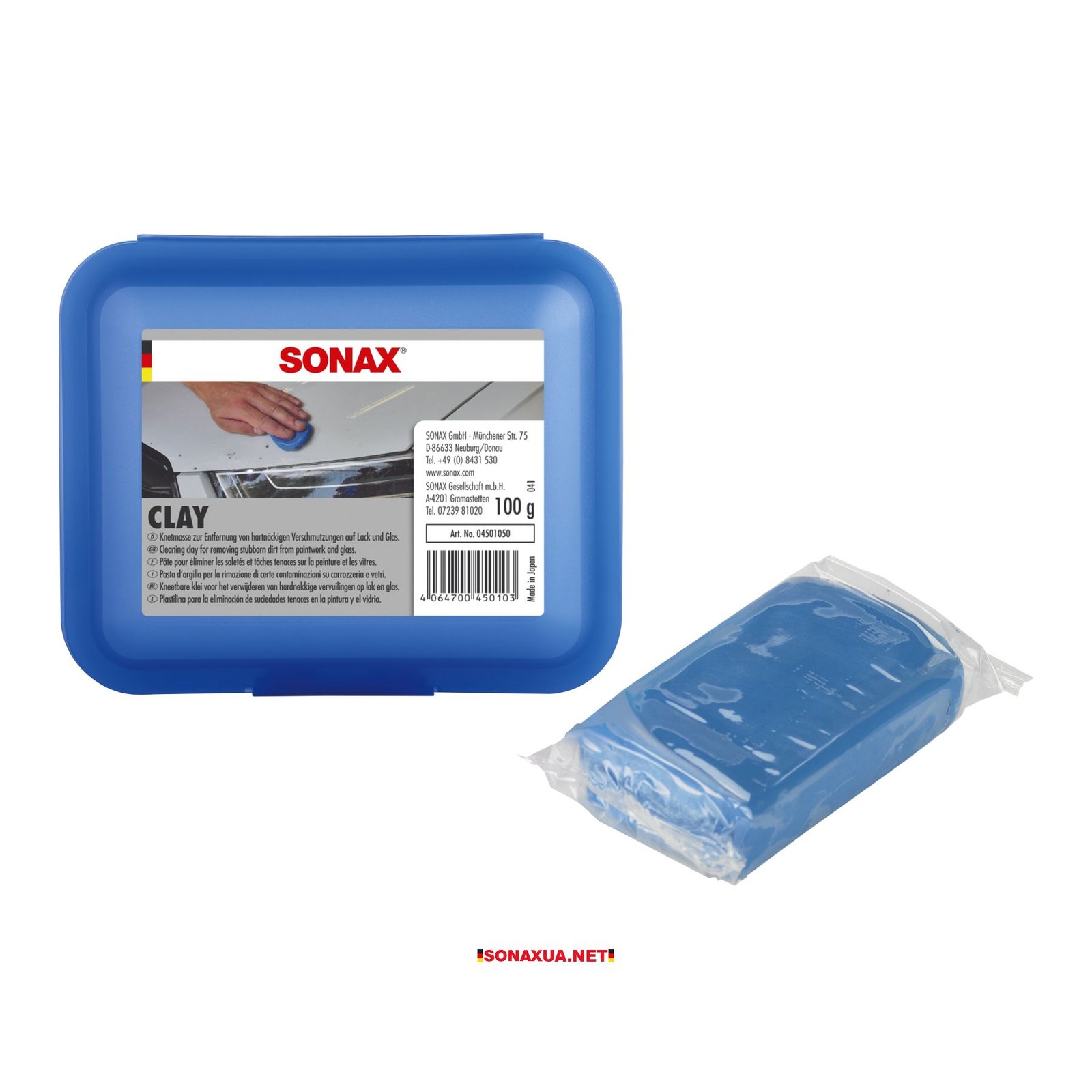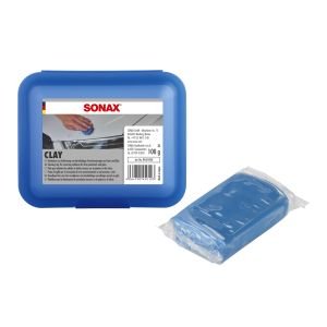 Специальная низкоабразивная очищающая синяя синтетическая глина SONAX Clay (450105) для удаления брызг после покраски автомобиля, промышленной пыли, налета ржавчины и окислов, древесной смолы, битума и других стойких загрязнений такого типа с лакокрасочной поверхности автомобиля. Вес 112 грамм.
